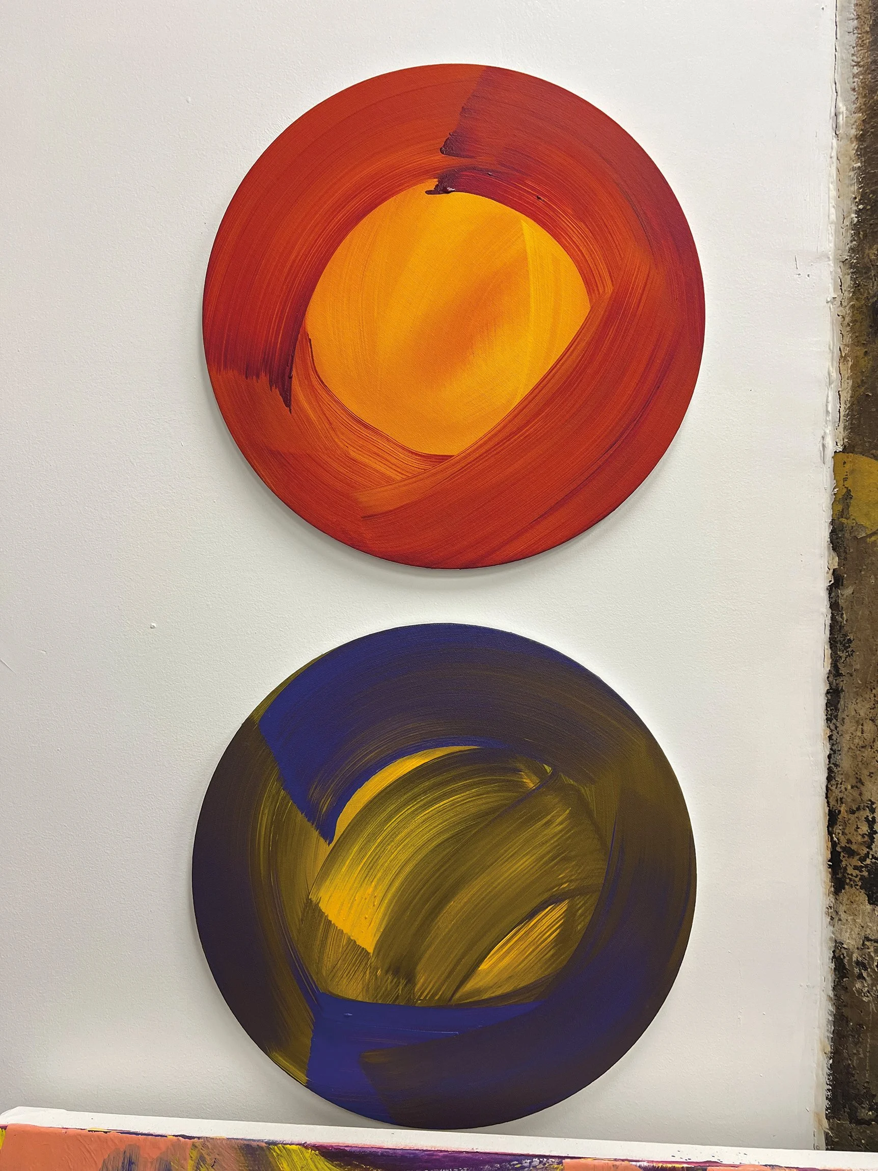 Anne Russinof, Gestural Symphony › Anne Russinof, "Rounds" Image 1 of 1 Anne Russinof, "Rounds" $2,500.00 undated, oil on canvas, 16 in. diameter, Add To Cart Added! undated, oil on canvas, 16 in. diameter,