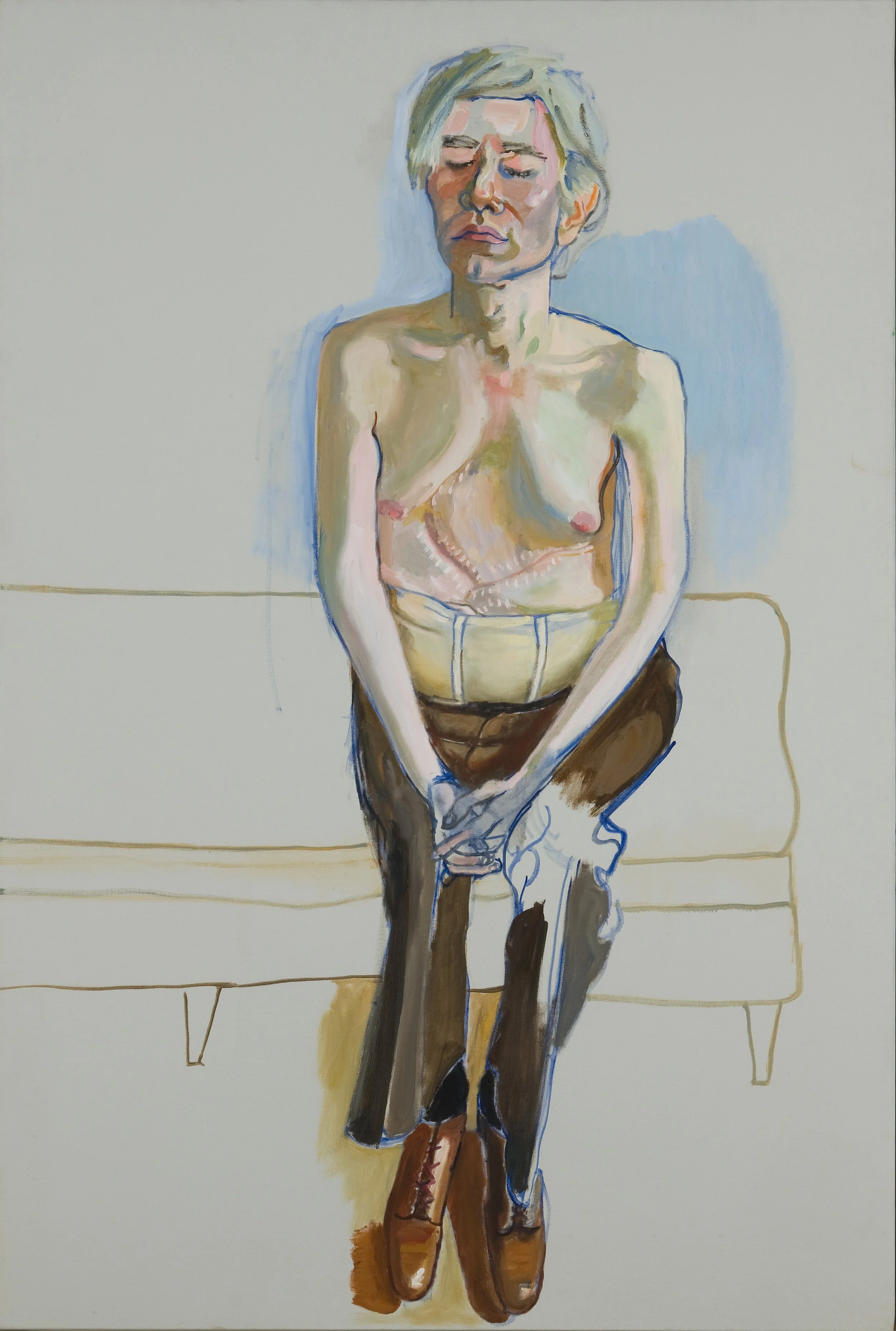 Alice Neel, (American, 1900–1984) , Andy Warhol, 1970, Oil and acrylic on linen , 60 × 40 in. (152.4 × 101.6 cm) Whitney Museum of American Art, New York, Gift of Timothy Collins, © The Estate of Alice Neel