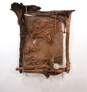 Bryce Zackery, Skoll, 2016 38x33x7, Driftwood, rope, and burlap
