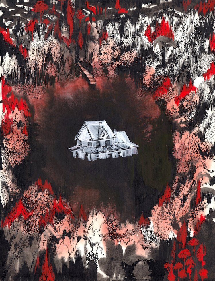 Matt Rota, Ghost House, 11”x14”, Pen, Ink, Gouache, 2020