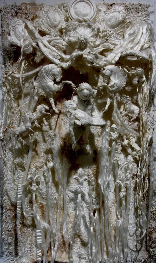 As a participant in Spring/Break Art Show, one of New York’s Armory week art fairs, Equity Gallery recently reimagined baroque splendor on the brink of spoilage for a well-received group exhibit titled Fragments of Luxury. The show presented the twisted morass of our cultural excess across photography, painting, and sculpture. The artists highlighted positions and representations of historic, cultural power while also showing something failing, falling. Taking Oscar Wilde’s famed quip, “Moderation is a fatal thing. Nothing succeeds like excess” as a pivot, the exhibit assembled art works dedicated to examining a luxury careening towards collapse.