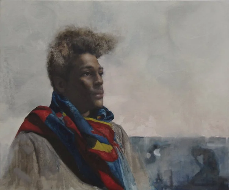 Outside of the series of works featured in Modern Prometheus, Marriage-Song also incorporates similar ideas and concepts into her commissioned work and other studio practices. Elements of impermanence, fragmenting environments and perspectives, as well as narratives that extend outside the confines of the canvas can be seen within works such as “Baltimore Superman” and "RN in the Studio." Rather than attempting to control the portraits she creates through over-working their surfaces or adding artificial flourishes, she allows the artworks to exist on their own terms, as beautiful, untamed microcosms of the human condition.