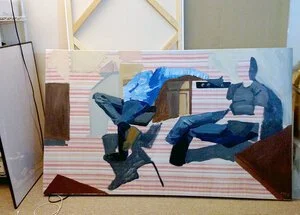 When working as a studio assistant, I was taught by Debra [Goertz] to put down the opposite color of the prominent color of the entire painting to create optical energy, or tension, between colors. When I was starting painting post-Ecuador, I did a whole body of paintings that had a cerulean blue underpainting. I painted all of my architecture friends from my school in Ecuador. These paintings are young, in oil, from when I was obsessed with real precision [in representation]. Then, I did a body of work that was all red underpaintings. That’s where you can see that changing the underpainting changes everything-- the blue paintings were all living in a frigid, Alaskan state. But the red paintings? You just sweat looking at the painting. Part of [doing underpainting] is personal preference. But also in a theoretical sense, when you paint on a white canvas, you’re creating something that is in conversation with drawing. When you put down a color first, you’re immediately creating a conversation with painting.
