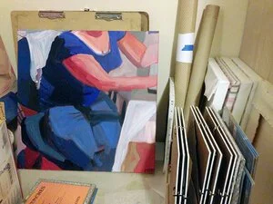 I got good at painting things quickly and prolifically for class. When it ended I asked myself, "How do I continue this?" The accountability of a class was a great driver to do work. However, your job as an adult and artist is to be accountable for creating your own structure. So I started off by calling all my friends and asking them to sit for me so that I had a fixed time and place to do work. Like my drawings on the MTA, I have a tendency to gravitate toward non-studio ‘studios’—my paintings of people have come almost entirely out of painting in other people’s homes. Usually I paint friends or open-minded strangers. It’s been beautiful because in a strange way I have a living Facebook stored away [gestures to closet filled with paintings].
