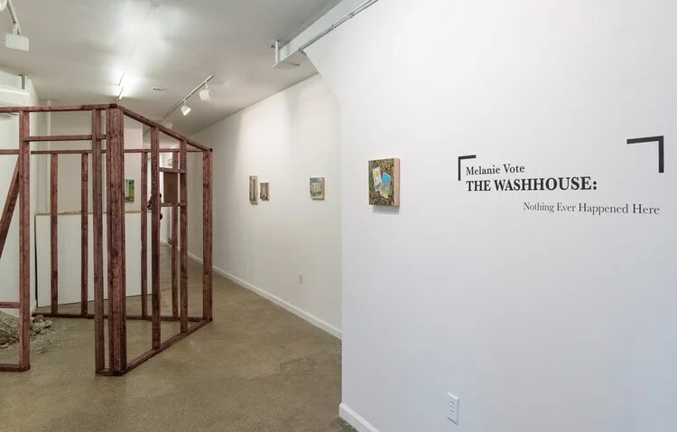 Melanie Vote’s recently closed exhibition at Equity Gallery titled “The Washhouse: Nothing Ever Happened Here” opened within days of New York City’s pandemic shuttering. She took to visiting the gallery, largely alone with a body of work planned, labored and obsessed over for two years in preparation for a public viewing. There was a story that needed to be told. As the days became weeks and the weeks became months, the gallery became Vote’s art studio and the installed work an inspiring plein air landscape to be painted. Just like what Picasso would have done.