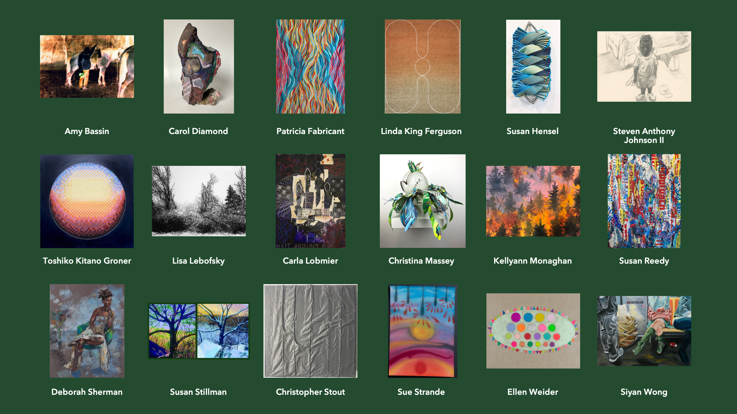 The juried artists of the 2022 New York Artists Equity Members Invitational exhibition are Amy Bassin, Carol Diamond, Patricia Fabricant, Linda King Ferguson, Susan Hensel, Steven Anthony Johnson II, Toshiko Kitano Groner, Lisa Lebofsky, Carla Lobmier, Christina Massey, Kellyann Monaghan, Susan Reedy, Deborah Sherman, Susan Stillman, Christopher Stout, Sue Strande, Ellen Weider, and Siyan Wong. Image courtesy of the artists and Equity Gallery.