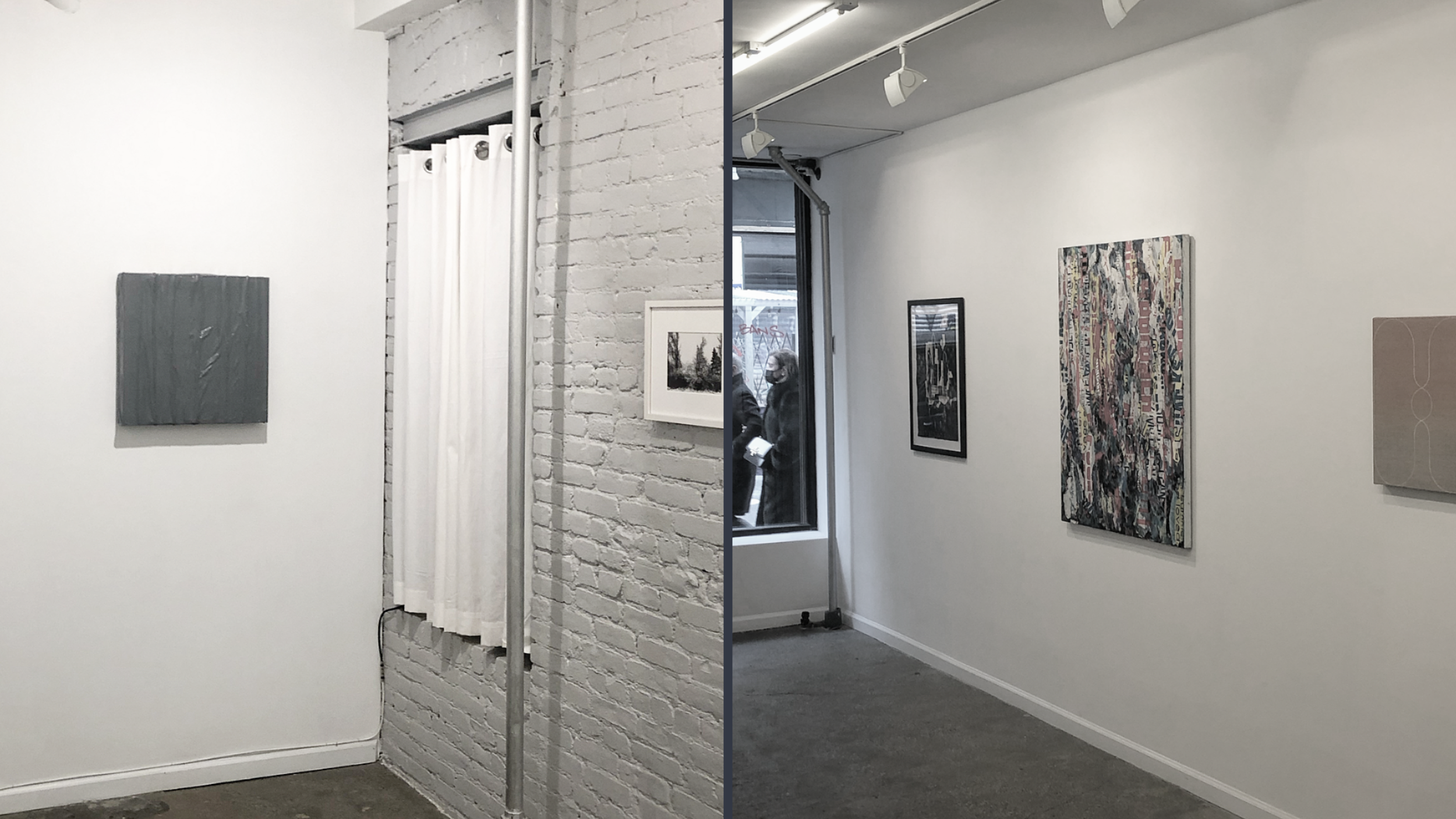 Image: An image diptych showing installation views of the juried New York Artists Equity Members Invitational. The work (left to right) is by member artists Christopher Stout, Lisa Lebofsky, Carla Lobmier, Susan Reedy, and Linda King Ferguson. Images courtesy of Equity Gallery.