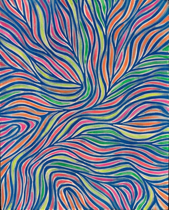The series is perhaps one of the strongest explorations to come out of Fabricant’s studio work--perhaps because they were created in spite of, and in response to, the terrifying episode we are attempting to push through. Offering a highly activated color field as a salubrious visionary space, these must-have gems recall the 1970s Pattern and Decorative movement promoted by the pioneer SoHo art dealer Holly Solomon who saw them as a celebratory and spiritually generous anecdote to the dry and deadly contagion of minimalism. Solomon’s prescient vision was spot on; soon after her discovery SoHo quietly abandoned its coldly conceptual installations in favor of richly hued expressionist works that evinced the hand as well as the heart---works that were unabashedly emotive, intuitive, and often stunningly beautiful.