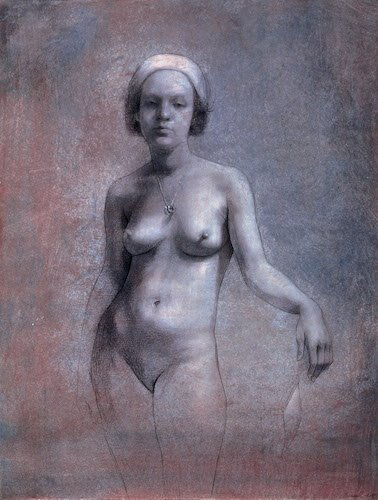 “Shades of Blue” is revival of a drawing show, titled (appropriately enough) “Blue Drawings” which was first exhibited at Portraits, Inc. in June 2015 at their New York City gallery. As do many exhibitions, the collective theme arose from observing ascending trends in practice --in this instance the use of blue toned paper, line and/or wash to heighten the expressive impact of drawing--- specifically in representational and figurative styles. Individually, the drawings chosen for the show referenced a diverse range of influences--from the balanced restraint of the neo-classical to a more experiential modernism. Once installed, the drawings coalesced into an expansive field of sea and sky, each work a distinct shade in an overarching expression of blue’s psychic depth and purity.