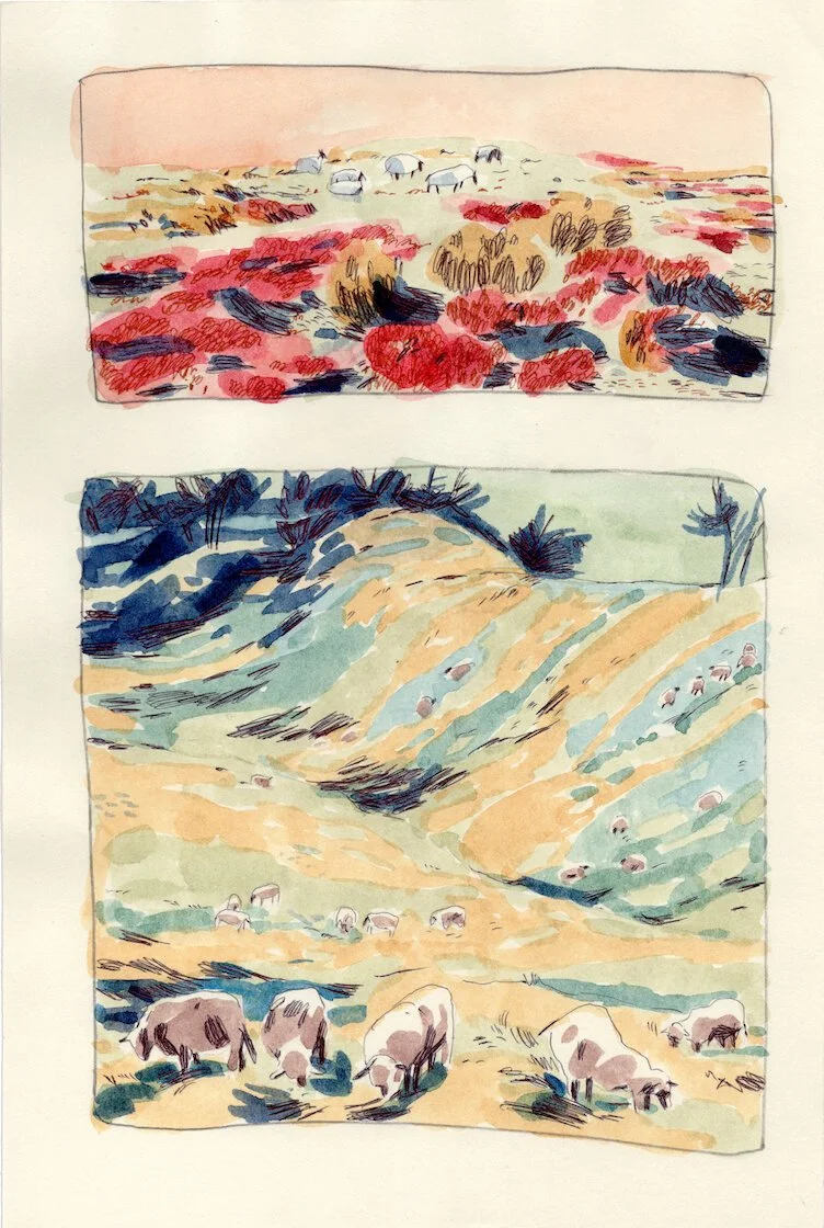 Karlotta Freier, "Sheep in northern landscape,” 2016, Watercolor on Paper, 7.12 x 11.11 inches