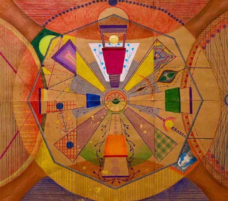 Srishti Dass, “Mannat”, 2021 - colored pencil and gold leaf on paper, 24 x 27 in.