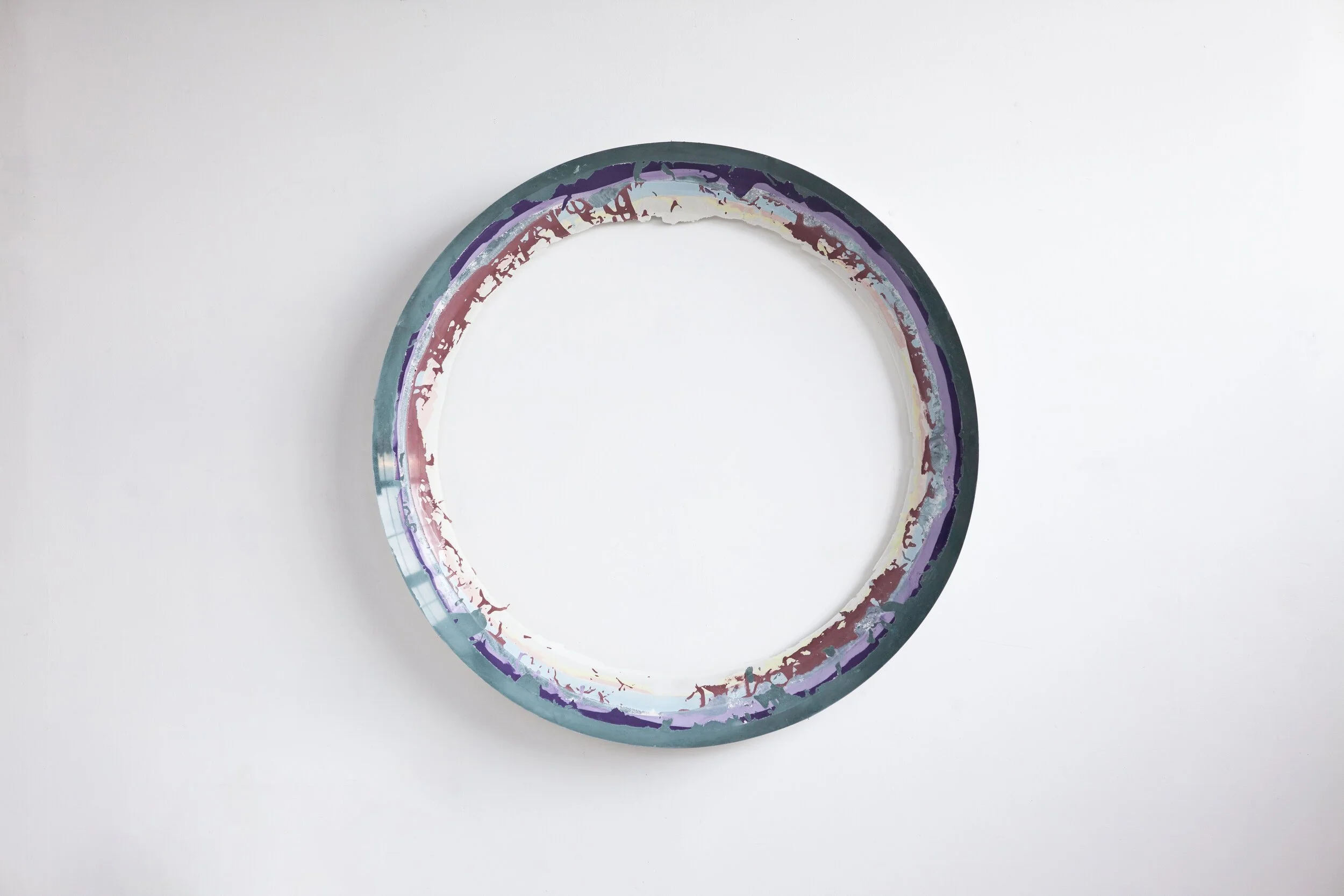 Image: C[44(1Edge of Jupiter, wall-mounted sculpture by Miguel Otero Fuentes. Materials: Open concave disc made of engineered concrete and pigment. Work Dimensions: 44”Ø x 4.5”. Date: 2021.