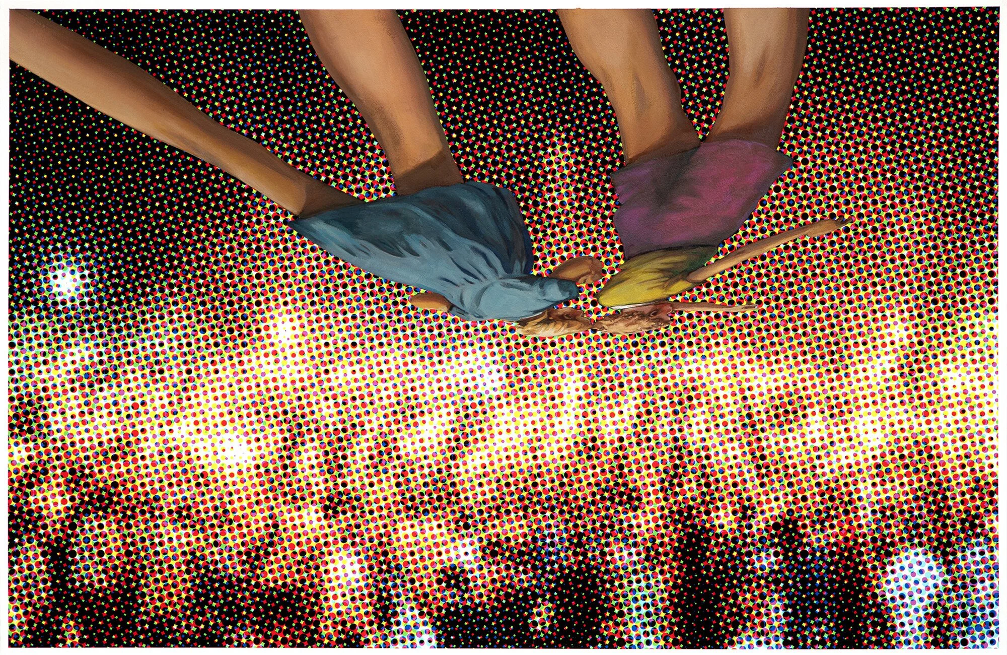 I work with various painting and print media to create abstract and figurative portrayals to address white privilege. As part of my creative process, I sift through American Culture's detritus, finding inspiration from children's books, news footage, comic books, and advertisements. I use imagery as a nuanced commentary, allowing different perspectives to dialogue on issues that have reached an apex.