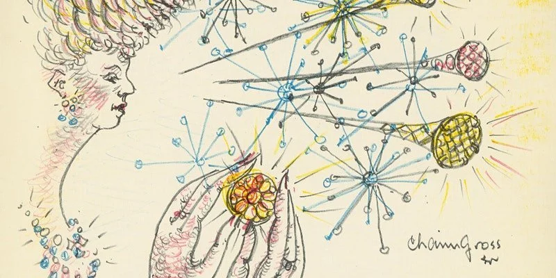 Image: Detail from "1952 Improvisations, Spring Fantasia, Masquerade Ball" by Chaim Gross, provided by the Renee and Chaim Gross Foundation
