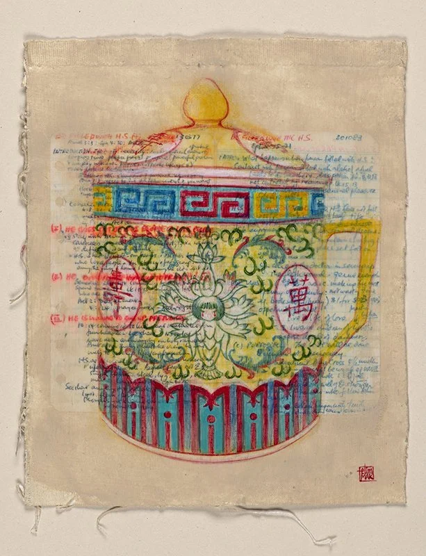 Familiar Stranger › Elim Mak, "Eternal Tea Mug (from Sermon Notes series)" Image 1 of 1 Elim Mak, "Eternal Tea Mug (from Sermon Notes series)" $700.00 2023, acrylic, watercolor, and sermon notes on unstretched canvas 10” x 8” Add To Cart Added! 2023, acrylic, watercolor, and sermon notes on unstretched canvas 10” x 8”